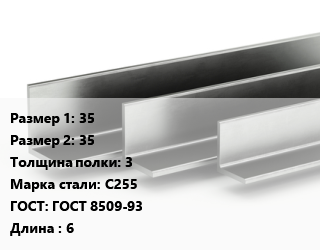 Уголок горячекатаный 35х35х3 Сталь: С255 ГОСТ: ГОСТ 8509-93 L=6