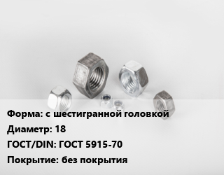 Гайка с шестигранной головкой D=18 ГОСТ 5915-70 без покрытия