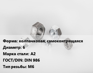 Гайка колпачковая, самоконтрящаяся D=6 Сталь: А2 DIN 986 М6, кг, цену уточнять цена от 1 028 Р / кг, где купить, условия доставки в Бресте и Брестской области