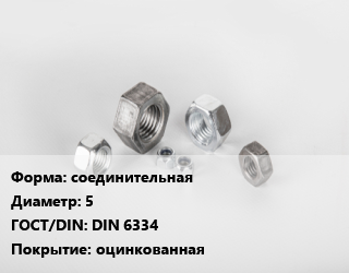 Гайка соединительная D=5 DIN 6334 оцинкованная, упаковка 100 шт, Китай цена от 306.56 Р / кг, где купить, условия доставки в Бресте и Брестской области