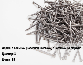 Гвоздь с большой рифленой головкой, с насечкой на стержне 3х55 без покрытия, чертеж 7811-7127,чертеж 7811-7128, кг цена от 118.64 Р / кг, где купить, условия доставки в Бресте и Брестской области