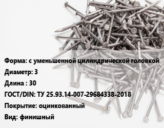 Гвоздь с уменьшенной цилиндрической головкой 3х30 ГОСТ: ТУ 25.93.14-007-29684338-2018 оцинкованный финишный
