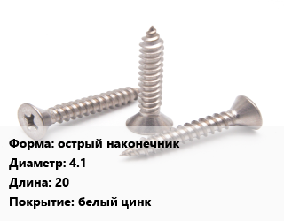 Саморез острый наконечник D=4.1 L=20 белый цинк