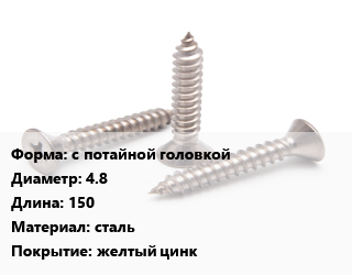 Саморез с потайной головкой D=4.8 L=150 сталь желтый цинк