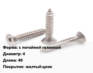 Саморез с потайной головкой D=4 L=40 желтый цинк, упаковка 8000 шт цена от 2 194 Р / кг, где купить, условия доставки в Бресте и Брестской области