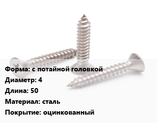 Саморез с потайной головкой D=4 L=50 сталь оцинкованный