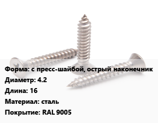 Саморез с пресс-шайбой, острый наконечник D=4.2 L=16 сталь RAL 9005, шт цена По запросу где купить, условия доставки в Бресте и Брестской области