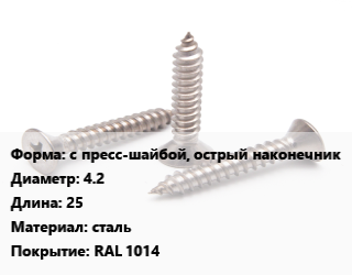 Саморез с пресс-шайбой, острый наконечник D=4.2 L=25 сталь RAL 1014, шт цена По запросу где купить, условия доставки в Бресте и Брестской области