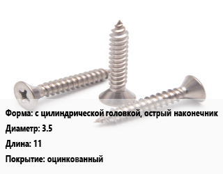 Саморез с цилиндрической головкой, острый наконечник D=3.5 L=11 оцинкованный