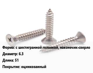 Саморез с шестигранной головкой, наконечик-сверло D=6.3 L=51 оцинкованный, кг, по запросу цена от 1 723 Р / кг, где купить, условия доставки в Бресте и Брестской области