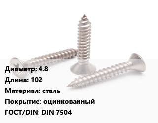 Саморез 4.8 L=102 сталь оцинкованный ГОСТ: DIN 7504