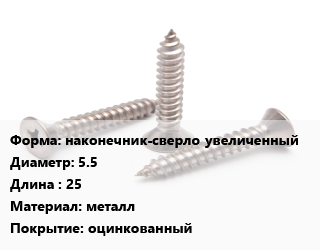 Саморез наконечник-сверло увеличенный D=5.5 L=25 металл оцинкованный, упаковка 420 шт цена от 1 233 Р / кг, где купить, условия доставки в Бресте и Брестской области