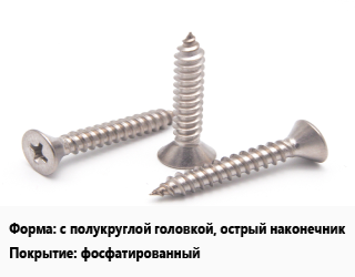 Саморез с полукруглой головкой, острый наконечник фосфатированный