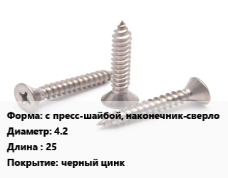 Саморез с пресс-шайбой, наконечник-сверло D=4.2 L=25 черный цинк, кг, для металла цена от 184.49 Р / кг, где купить, условия доставки в Бресте и Брестской области