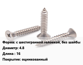 Саморез с шестигранной головкой, без шайбы D=4.8 L=16 оцинкованный, шт цена По запросу где купить, условия доставки в Бресте и Брестской области