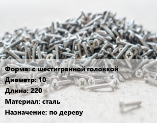 Шуруп с шестигранной головкой 10х220 сталь по дереву, упаковка 1000 шт цена от 20 022 Р / кг, где купить, условия доставки в Бресте и Брестской области