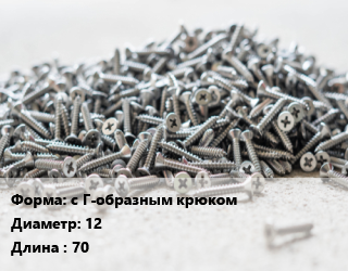 Шуруп с Г-образным крюком 12х70 сталь оцинкованный, упаковка 100 шт, Китай цена от 1 711 Р / кг, где купить, условия доставки в Бресте и Брестской области