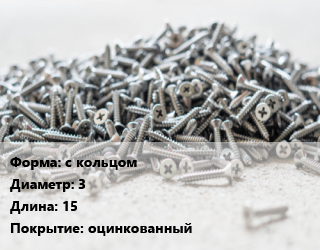 Шуруп с кольцом 3х15 оцинкованный, упаковка 100 шт, Китай цена от 76.69 Р / кг, где купить, условия доставки в Бресте и Брестской области