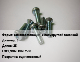Винт самонарезающий, с полукруглой головкой 5х25 DIN 7500 оцинкованный, цена за шт, кг цена от 2.02 Р / кг, где купить, условия доставки в Бресте и Брестской области