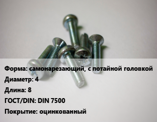 Винт самонарезающий, с потайной головкой 4х8 DIN 7500 оцинкованный, 4.8, цена за шт, кг цена По запросу где купить, условия доставки в Бресте и Брестской области