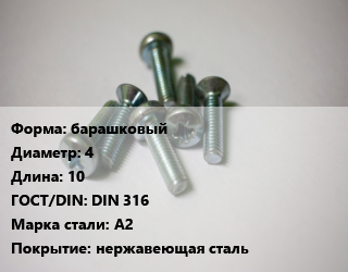Винт барашковый 4х10 DIN 316 Сталь: А2 нержавеющая сталь, цена за шт, кг цена от 50.4 Р / кг, где купить, условия доставки в Бресте и Брестской области