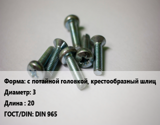 Винт с потайной головкой, крестообразный шлиц 3х20 DIN 965, цена за шт, кг цена По запросу где купить, условия доставки в Бресте и Брестской области