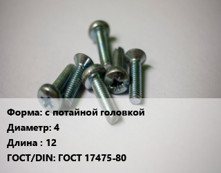 Винт с потайной головкой 4х12 ГОСТ 17475-80