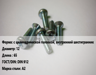 Винт с цилиндрической головкой, внутренний шестигранник 12х65 DIN 912 Сталь: A2, по запросу, кг цена от 29.79 Р / кг, где купить, условия доставки в Бресте и Брестской области