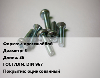 Винт с прессшайбой 5х35 DIN 967 оцинкованный, цена за шт, кг цена от 5.23 Р / кг, где купить, условия доставки в Бресте и Брестской области
