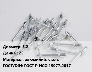 Заклепка 3.2х25 алюминий, сталь ГОСТ: ГОСТ Р ИСО 15977-2017