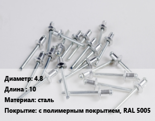 Заклепка 4.8х10 сталь с полимерным покрытием, RAL 5005, шт, вытяжная цена По запросу где купить, условия доставки в Бресте и Брестской области