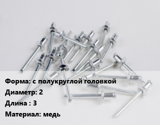 Заклепка с полукруглой головкой 2х3 медь, шт цена от 2 Р / шт, где купить, условия доставки в Бресте и Брестской области