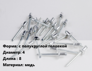 Заклепка с полукруглой головкой 4х8 медь, кг цена от 272.93 Р / шт, где купить, условия доставки в Бресте и Брестской области
