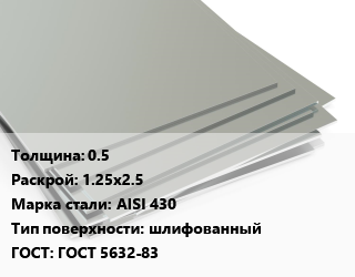 Лист нержавеющий 0.5 1.25х2.5 Сталь: AISI 430 Тип:шлифованный ГОСТ 5632-83