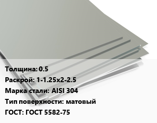 Лист нержавеющий 0.5 1-1.25х2-2.5 Сталь: AISI 304 Тип:матовый ГОСТ 5582-75
