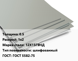 Лист нержавеющий 0.5 1х2 Сталь: 12Х15Г9НД Тип:шлифованный ГОСТ 5582-75