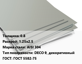 Лист нержавеющий 0.8 1.25х2.5 Сталь: AISI 304 Тип:DECO 9, декоративный ГОСТ 5582-75, по запросу,Швеция цена от 380 941 Р / т, где купить, условия доставки в Бресте и Брестской области