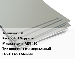 Лист нержавеющий 0.8 1.5хрулон Сталь: AISI 430 Тип:зеркальный ГОСТ 5632-83