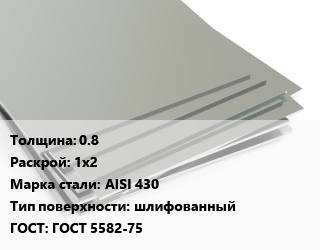 Лист нержавеющий 0.8 1х2 Сталь: AISI 430 Тип:шлифованный ГОСТ 5582-75