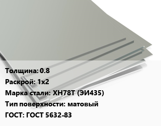 Лист нержавеющий 0.8 1х2 Сталь: ХН78Т (ЭИ435) Тип:матовый ГОСТ 5632-83