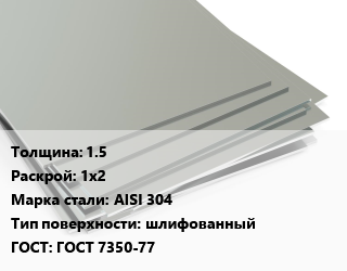 Лист нержавеющий 1.5 1х2 Сталь: AISI 304 Тип:шлифованный ГОСТ 7350-77