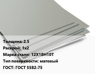 Лист нержавеющий 2.5 1х2 Сталь: 12Х18Н10Т Тип:матовый ГОСТ 5582-75