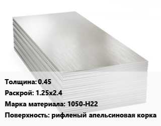 Алюминиевый лист 0.45 1.25х2.4 Марка: 1050-Н22 рифленый апельсиновая корка
